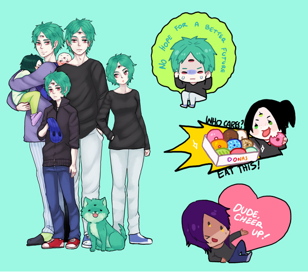 This set contains 8 stickers(4 designs) of the characters from _Salomon. The biggest sticker is 11 cm tall.