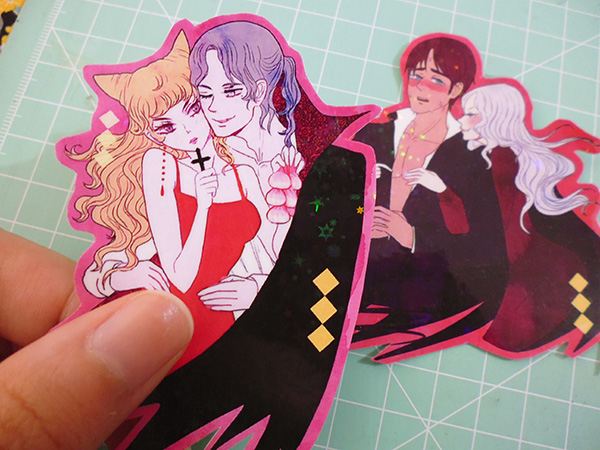 You get a set of two prism laminated stickers! They are 6cm tall aprox.