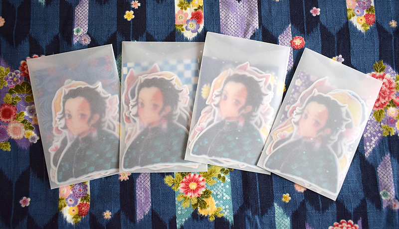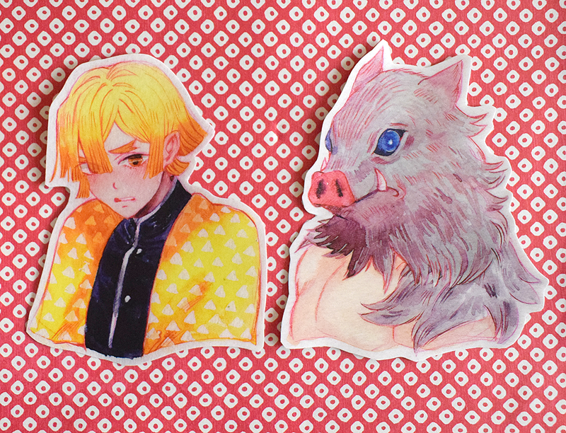 A sticker set that contains 5 stickers + a tiny surprise! The characters who appear are the following: -Tanjirou -Nezuko -Zenitsu -Inosuke(Two versions) The stickers are 7 to 8 cm tall approximately, matte laminated.