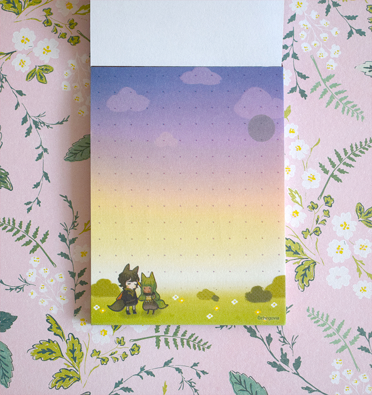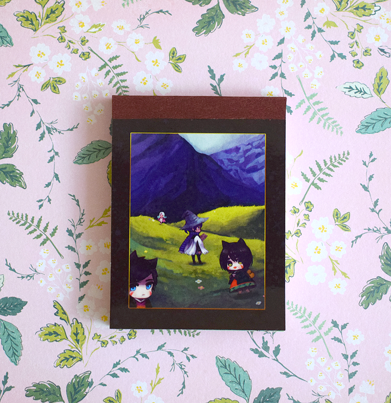 A tiny memo pad (6cm x 8cm) It contains full colored sheets(2 designs/50 in total)
