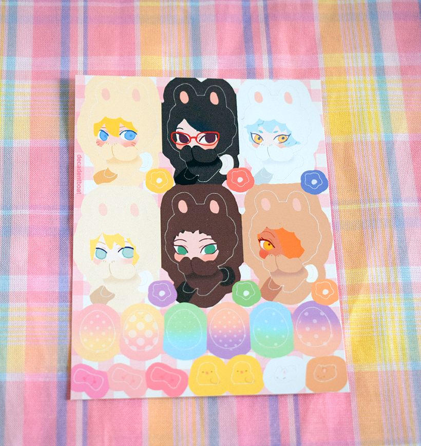 A 9x8 cm sticker sheet that contains 6 character stickers and 19 mini decorative ones. Ideal for your journaling projects!