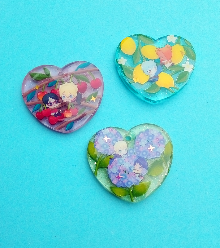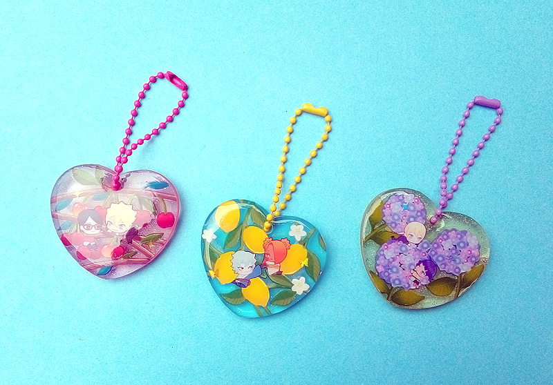 A 4cm tall heart-shaped keychain made out of resin. These keychains are 100% handmade! So they are not perfect, but I try they are close to that.