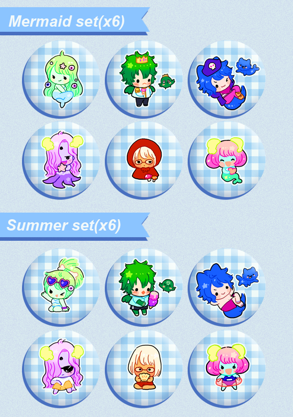 This is a set of 6 1-inch badges. Choose between the mermaid and summer set!