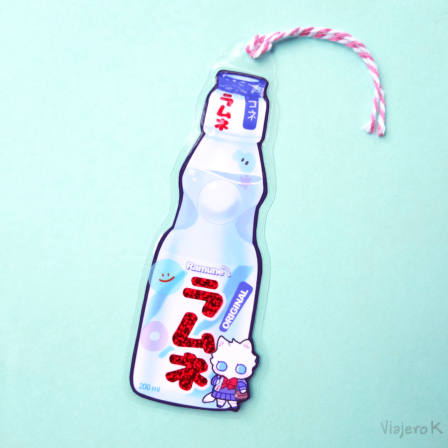 Default is light blue 17.5cm tall, laminated with hard plastic with glitter holo details! Has a long string too!