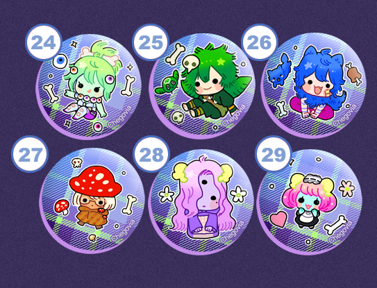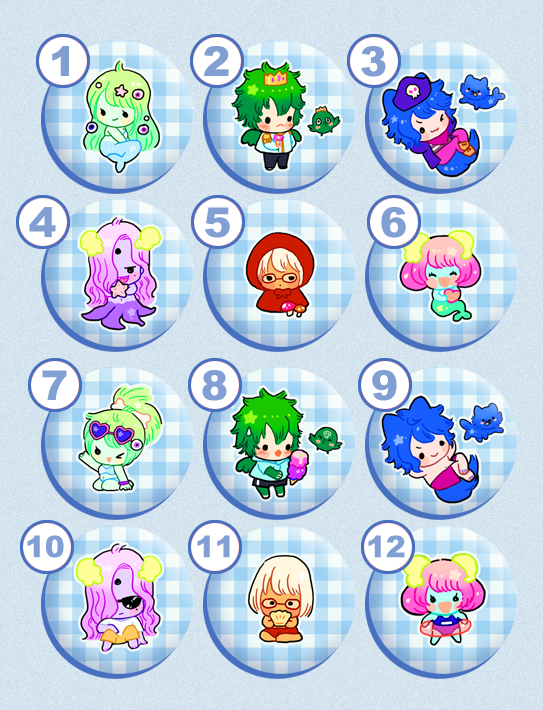 You get 5 1inch(2.5cm) buttons of your choice. Leave a message when purchasing which numbers do you choose. And yes, you can choose multiples of a single design too :D
